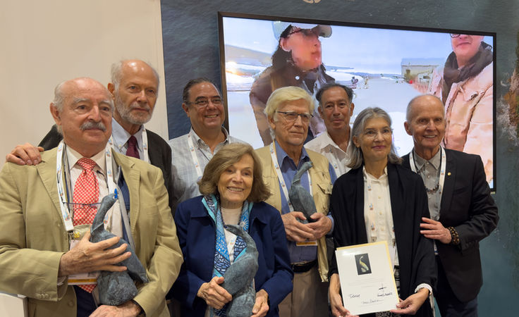 Group photo with Ramón Pérez Gil (RPG), recipient of the OCC; Patricio Robles Gil (PRG); JPR; Dr. Sylvia Earle; Dr. Russell Mittermeier; JV; CP; and VM.